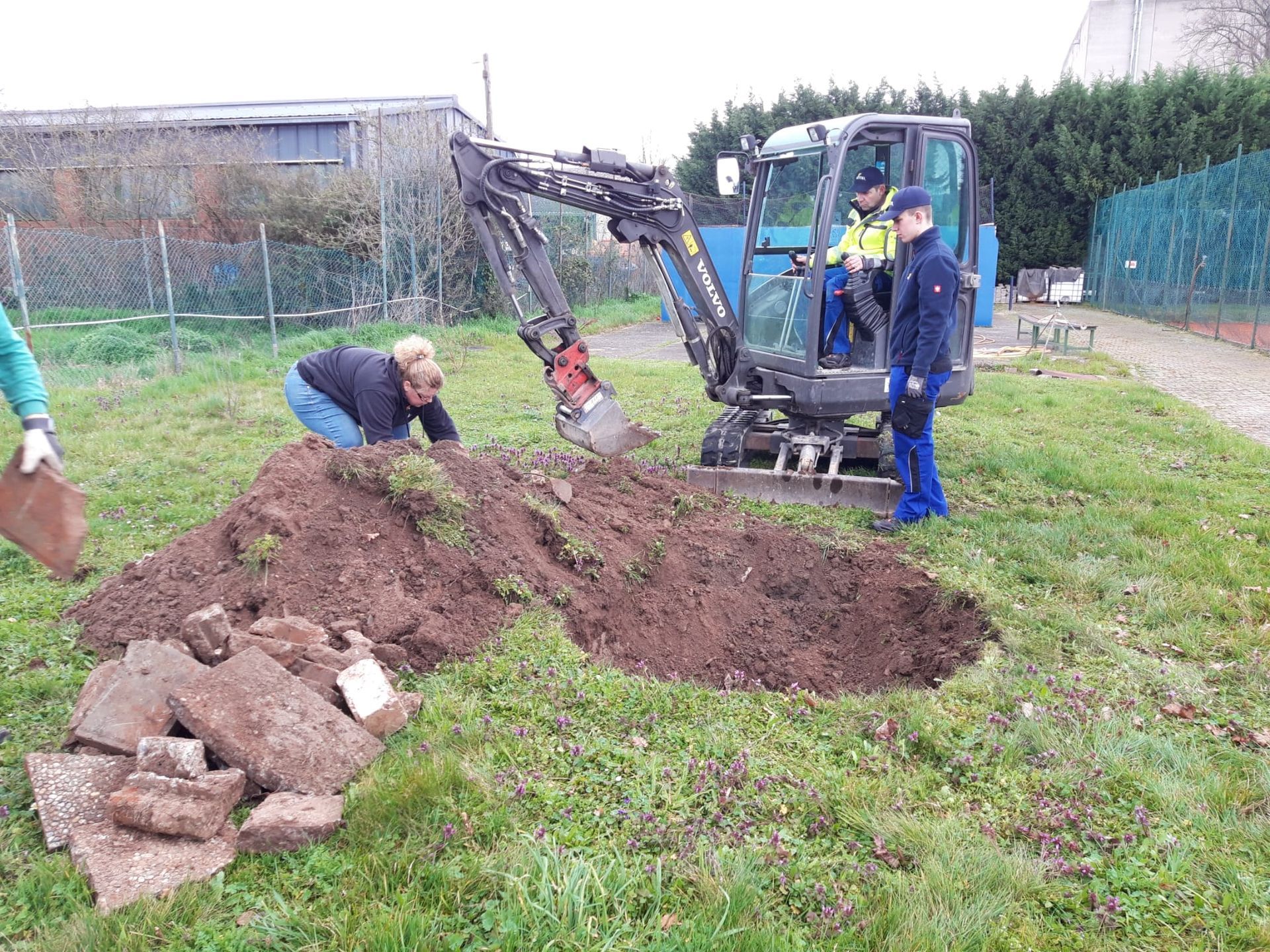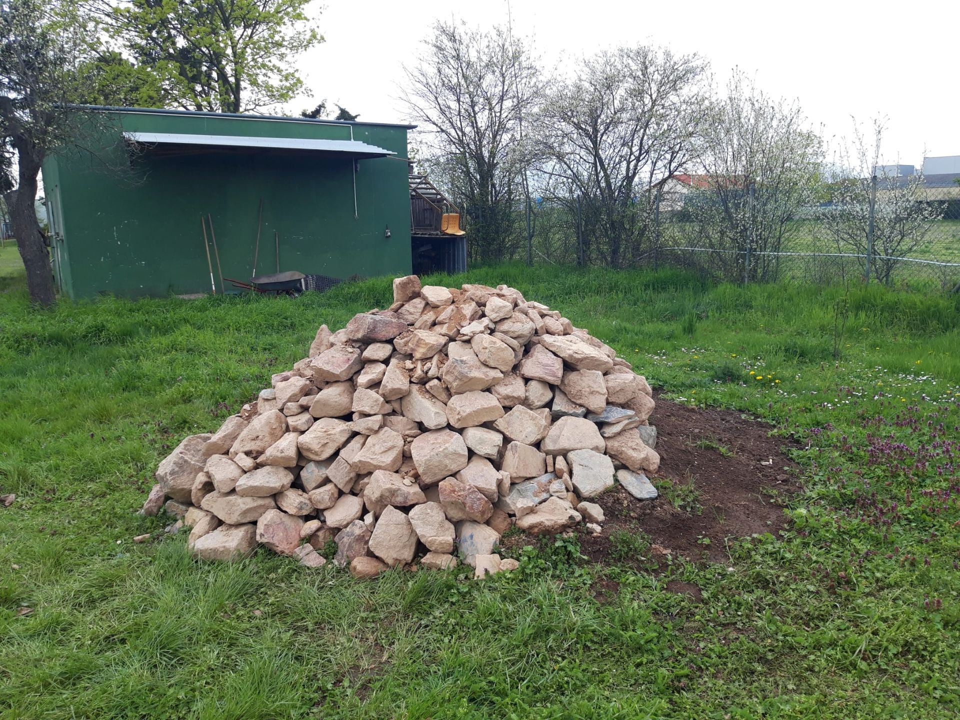 Einige werden sich vermutlich gewundert haben, welcher komische Steinhaufen da plötzlich auf dem Rasenstück zwischen Geräteschuppen und Ballwand aus dem Boden gewachsen ist.